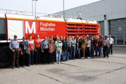 Nach einer kurzen Fahrt erreichte man das zweite Ziel, den Münchner Airport, den zweitgrößten Flughafen Deutschlands. Natürlich wurde während der Führung auch die Flughafenfeuerwehr besichtigt. Hier wurde das Aufgabengebiet der Feuerwehr erklärt. Beeindruckend war die Vorführung eines Flugfeldlöschfahrzeuges, ein mit 43 Tonnen Gewicht und 1000 PS Leistung doch recht wendiges Fahrzeug. Während der Rundfahrt mit dem Bus durch das weitläufige Gelände berichtete unsere Führerin auf amüsante Weise interessantes über die zahlreichen Gebäuden, aber auch über die vielen Flugzeuge, die man während des Be- oder Entladens an den Terminals bestaunen konnte.